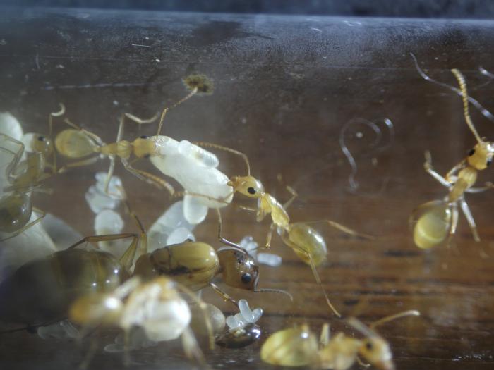 Очень красивые мураши. Интересно, почему у них такая бледная окраска.
