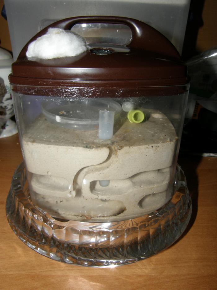 Колония потихоньку набирает "массу".Примерно месяц назад может чуть больше были переселены в шести камерный формик,в котором пока занимают только две камеры,остальные перекрыты.Нашли где то лаз,которого я ни как не найду,чтоб заделать, и иногда погуливают по моей полке ))).Чтоб не убегали, поставил форм в большую хрустальную пепельницу и налил в неё воды,не помогает))) вода быстро испаряется.не успеваю следить.Да и прогулки эти меня пока не беспокоят,пока.Я же на улицу выхожу,не сидеть же всё время дома. Наконец то начали появляться "огромные" нигеры которые на две головы больше остальных,аж приятно смотреть))).Фото формика выложу чуть позже.