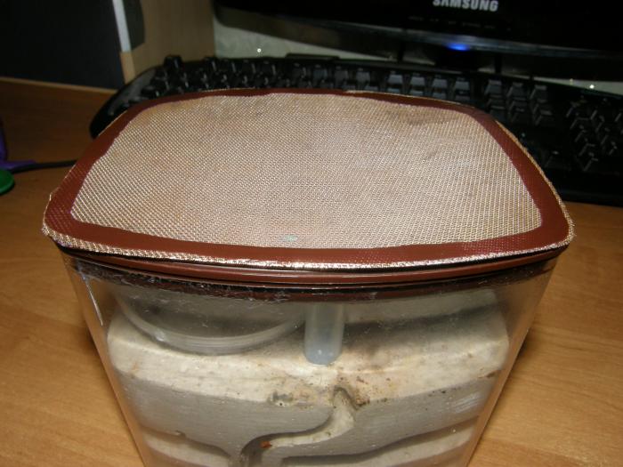 И наконец то руки дошли до переделки крышки нигерского барака ))). Мелкую латунную сетку нашёл на рынке у "барыг",наверно древнюю как г-вно мамонта)))Отрезал ножовкой по металлу часть старой крышки,обычными ножницами подходящий кусок сетки и притащил это всё на кухню.Поставил алюминиевый противень на запаленную конфорку ,постелил на него пищевую фольгу,на неё сетку,а на сетку нужную часть бывшей крышки.(дедка за репку,бабка за дедку....))))Долго ждать не пришлось сек. 30-40 и пластик врос в сетку. Очень надеюсь что вентиляции теперь будет достаточно.Первые 2 фото как было,следующие как стало.