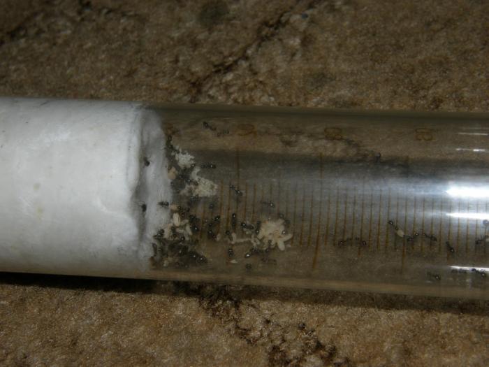 всем доброго времени суток.Стал обладателем нигеров в феврале этого года,спасибо огромное Vadex(у).Вадим подарил мне их, с условием ведения блога.вот пожалуй и начну вести блог,(с опозданием на несколько месяцев))).)За ошибки сильно не бейте,двоечник))). Мураши пришли ко мне через день после отправки Вадимом,в количестве 16 штук,матка и 15 рабочих,в небольшой пробирке в которой почти закончилась вода.Слегка потрепанные,а точнее подтопленные,мне даже показалось что пару мурашей утонуло(к счастью показалось).С горем пополам переселил их в более просторный инкубатор который соорудил САМ!(я собой гордился))). Пробирки мне достались случайно, от забывчивого знакомого бармена,который заходит ко мне в гости крайне редко,не знаю зачем они ему были нужны,но видать нужны были не очень,а может и совсем не нужны))) Пробирки хорошие совдеповские 200Х20 мм штук 15 и огромные 100 мл мензурки штук 5.Так вот: переселил я их и никак не мог нарадоваться своим пополнением,выделил им отдельную полку,побежал на рынок накупил им всяких деликатесов (гаммаруса,дафнию,сушёного мотыля...гр.15 вышло)).)наколотил 5 мл. медового сиропа,выпросил у MorgensterN жуков знахарей, соорудил маленькую арену...и давай растить колонию негритят.недели через три примерно точно не помню пришлось опять переселять т.к. они загадили всю ватку и близ лежащие окрестности в инкубаторе некогда сухим кормом.загадили это мягко сказано,заштукатурили)) может они себя и уютно чувствовали в своей халабуде,но я себя не очень, т.к. не мог наблюдать чего там происходит.Переселил,потом опять переселил(плесень завелась) потом опять(не доглядел чего то вода помутнела).Пока переселял их наплодилось штук 70-80.какие плодовитые засранцы.И вот новый инкубатор сделанный уже из мензурки 100 мл.
