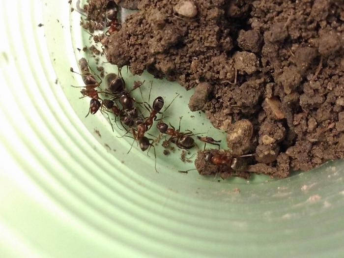 Поликтене лучше всего подбросить несколько куколок сервиформики и пару рабочих. Может быть и получится. Если речь о Туапсе, то на фото с землёй скорее всего двухцветные песчанки (Formica cinerea) по версии Зейферта (этот немец свёл Formica imitans в синонимы к Formica cinerea) или Formica imitans по версии Длусского. Не самый лучший вид для подсаживания. Слишком агрессивны. Но если ничего другого нет, то пойдут.