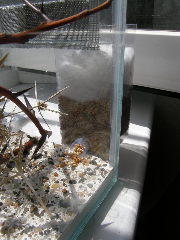 Одна колония переехала на новую арену,которую делать ещё не закончил,не хватило терпения.осталось доделать нужные мелочи,кормушку нормальную,ручки на съемные стёкла и некоторые декорации. Размер арены 150х150х500.