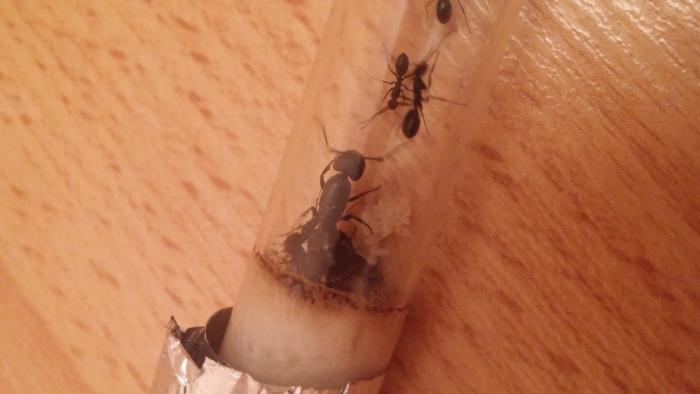 Вечер добрый. Решил, что мой первый блог на сайте про муравьев должен все таки быть про муравьев. И первыми моими муравьями которые на мой взгляд этого достойны стали Camponotus Vagus. Когда ко мне приехала матка (спасибо ab_saratov), то я был мягко говоря удивлен. Я конечно знал, что она большая, но увидев ее в живую, был просто в шоке! Так вот, буду здесь рассказывать про мой опыт общения с этими красавцами) Пока есть матка+расплод с коконами. Жду первого муравья!