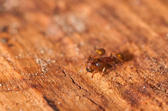 Вопрос о фокусировке, насколько я понял, касается рабочего Temnothorax affinis. В моем случае в фокусе оказывался примерно каждый пятый кадр. Temnothorax affinis - очень маленькие муравьи, они целиком вмещаются в глубину резкости в отличие от Crematogaster schmidti. Съемка велась с использованием внешней вспышки (солнце туда не проникает) с вручную подобранной мощностью, выдержка 1/180 сек., диафрагма f/16, автофокус отключён. Объектив SIGMA 150 f/2.8, довольно тяжелый, большим пальцем левой руки приходилось придерживать его за бленду, а указательным пальцем - упираться в полено.