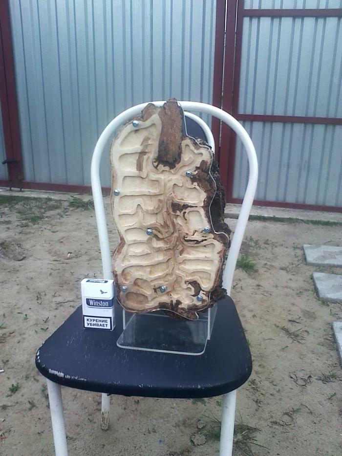 Здравствуйте господа мирмекиперы. Вот и я решился обзавестись муравьями.Кратко расскажу свою историю. Лазая по просторам интернета ,нарвался на ваш сайт ,Показал ребёнку ,что можно завести муравьёв дома .Так Она мне всю плеш проела ,давай заведём да давай заведём,дело было в новогодние праздники.Так как живу в Сибири ,купить их ,или поймать нереально. Вот и ждал тепла, чтобы заказать .Лазил по сайтам изучал,читал .Ребёнок та всё перегорел, уже всё равно, заведём или нет . А вот я ,начитавшись наоборот загорелся, Заказал в antshop.ru Crematogaster shmidti, и Messor structor . В данный момент они ещё идут по почте. Нужно же им сделать формикарии .Для мессоров всё просто, сделал из гипса ,даже фотать не буду .А вот для кремов решил сделать из берёзового капа. Перечитал кучу информации, пришлось купить кое какой инструмент . Благо капа уже год лежала, сохла. Вроде не криворукий. И как говорится ,взял и сделал . Так-как я ещё не делал им вход ,хочу спросить,где лучше сделать, сверху или снизу?И ещё надо ли делать в вентиляцию? Извиняюсь за качество, фото с телефона.