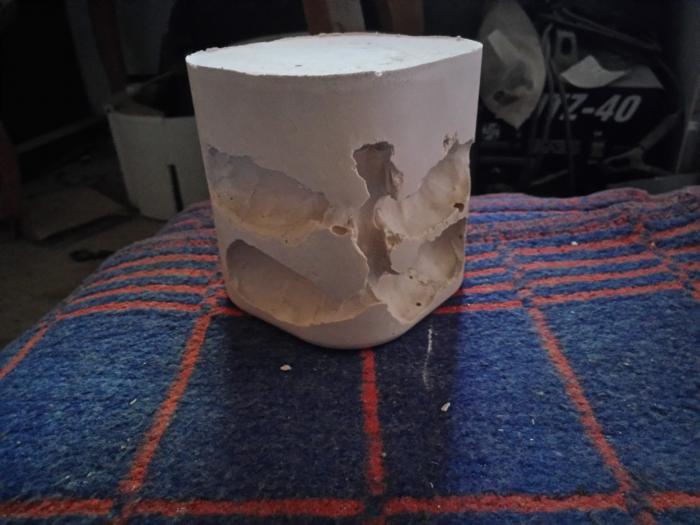 И вот гипс застыл. Он засох за половину суток. И видно что я случайно перелил гипса.