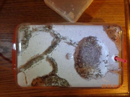Метнувшись в магазин, я купил еще одну масленку и вложил в нее готовую отливку, предварительно просверлив отверстия для выхода на арену и вентиляции. Вентиляционные отверстия я закрыл мелкоячеистой сеткой, взятой из капельницы от инфузионной системы, припаяв ее к корпусу нагретой шляпкой гвоздя. Соединил формик с ареной трубкой от той же инфузионной системы и 18 мая 2014 года начал Великий Исход.