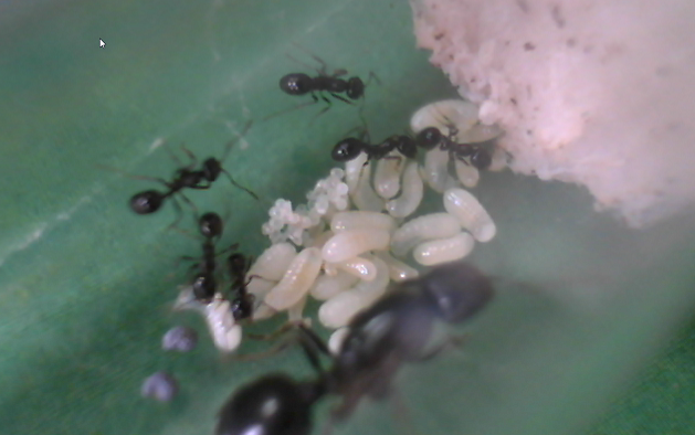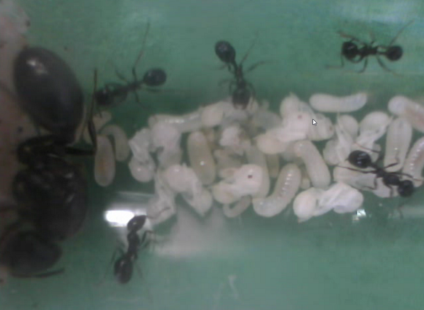 Рабочие не против. Они активны. В кладке уже явно прослеживаются быстро растущие личинки.