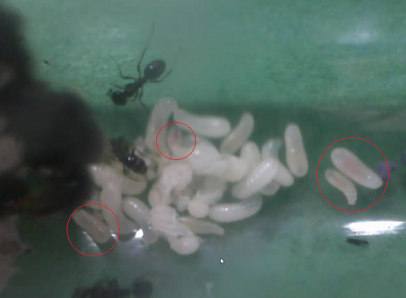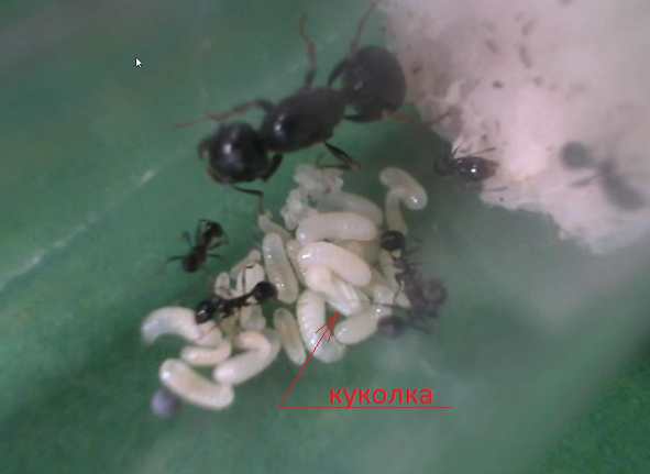 Муравьи ещё могут задерживать раст личинок уменьшая их кормление, и возможно крупных личинок ни кто не скармливал, а куколка как раз из их числа.