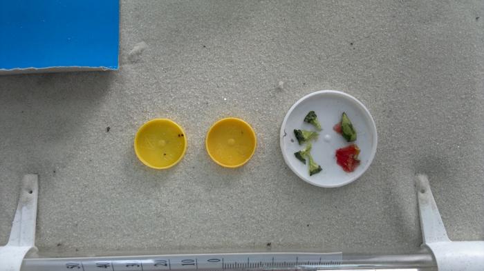 Не долго думая, поставил две кормушки, одну с зерном мака, а другую с мухой. Причем поставил их в центр арены - подальше от выхода из пробирок.