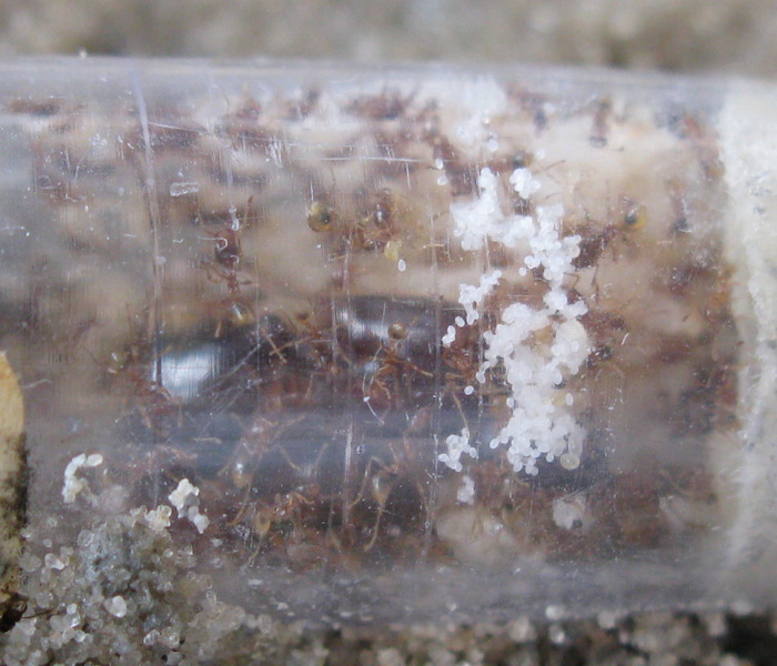 Другую колонию аффинисов пересадил в прозрачный пластиковый бокс (он на фото в топике), чтобы можно было нормально фотографировать их подземную жизнедеятельность.