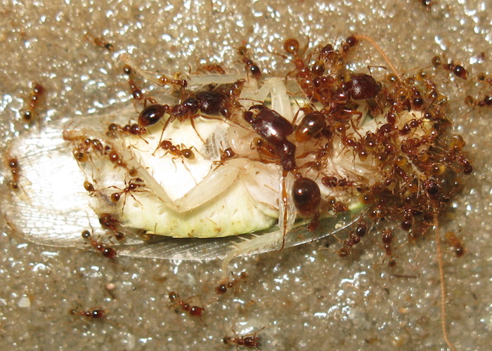 Интересно, кто из вменяемых муравьев сунется в толпу гетонов, чтобы отобрать у них добычу? :) Фото процесса закапывания таракана можно посмотреть в первом комментарии.