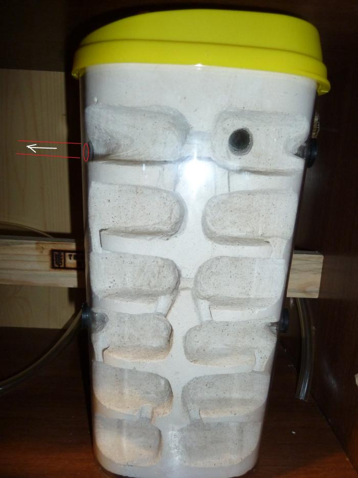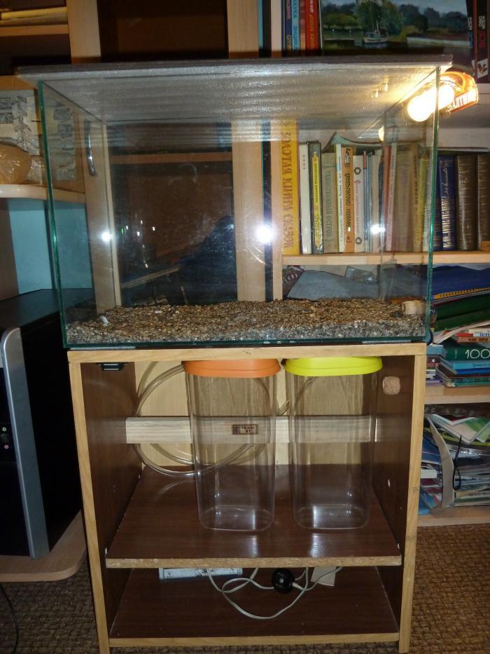 А вместо ватки, чтобы она не светилась ярким пятном, попробую положить в поилку камешки, те что использовал в качестве грунта. Вообщем, посмотрим)