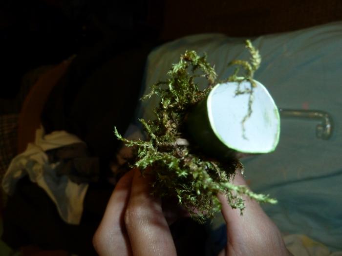 Камуфляж сделан из бумаги, покрашен гуашью, закреплен ПВА, и задекорирован мхом)