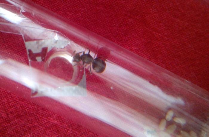 Так уж случилось, что дорогу решила перебежать матка лазиусов, а дальше я еще шестерых насчитала, и загребущие руки не вняли голосу разума и таки загребли муравьиную королеву. Благо, как у любой уважающей себя девушки-мирмекипера, в дамской сумочке вместо бесполезной косметики и прочей ерунды, лежала заготовленная как раз для такого случая пробирка с ваткой. В последнюю таки и угодила Бьянка.