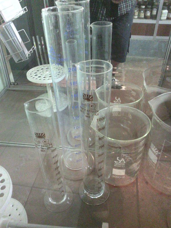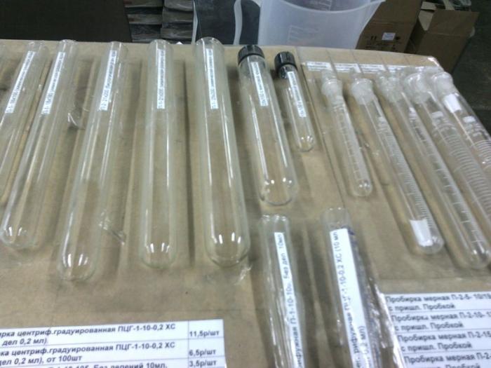 Полнят ассортимент пробирки, колбы, чашки и чаши, воронки, ступки, стёкла, трубки.