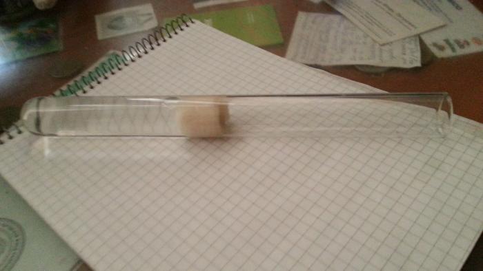 2. Комок плотно скрученной ватки вставляете в пробирку. Ватка у меня скручена цилиндриком с диаметром чуть больше диаметра пробирки и длинной 15-20 мм. Запихиваю утрамбовывая. Получается плотно.