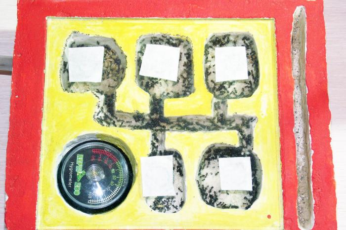 Фактически новая «плита» отличается от старой размерами и внутренней свободной площадью. Увеличена канавка увлажнена. При первом переселении новая сухая плита была увлажнена порядком 600 миллилитрами воды и через 12 часов еще 300 миллилитрами. Само переселении продолжалось менее 8-и часов.