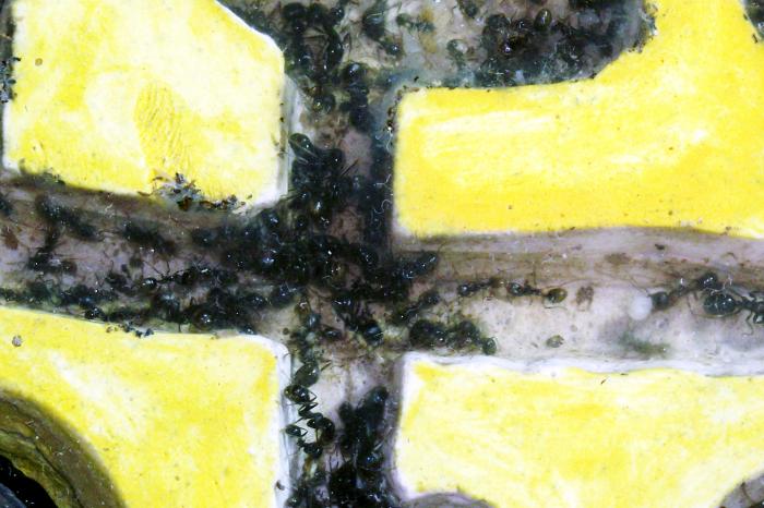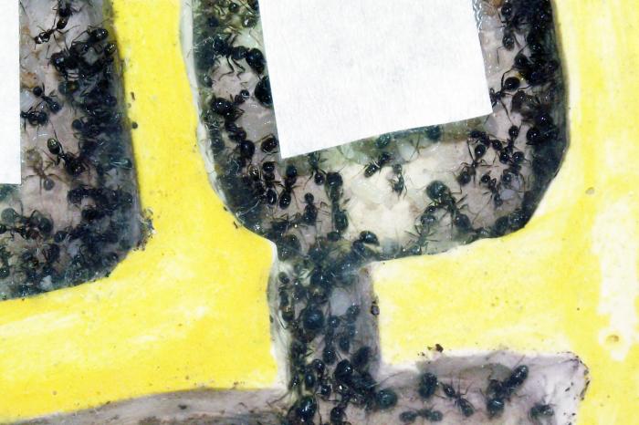 Заранее оптимизируя арену, я предусмотрел расположение кормушек и вертикальной поилки таким образом, что они располагалась на максимальном удалении от входа в гнездо, что «усложняло» жизнь муравьев, которые создавали устойчивую дорожку от семян к дому.