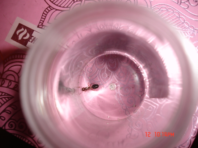 Пропитал марлю водой,проковырял отверстие,подкидываю сахорок,ест, воду слизывает с ткани. Сегодня на фотосесию отказалась выходить наружу,фоткал в колбе.Если это самка то когда ждать кладку?
