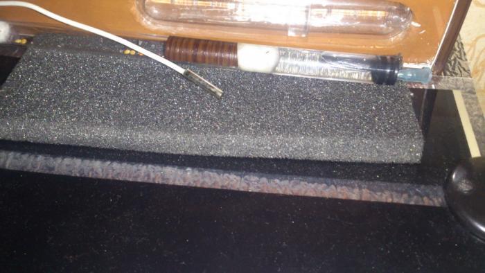 Сейчас на полке все расположено так: прокламин с фольгой, сверху термоковрик, затем кусок поролона толщиной 1.5 см, на поролоне стоит пробирка и у пробирки датчик от термометра. Конденсата в пробирке как на удивление нет.