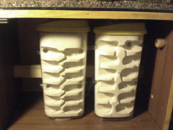 Вот что у меня вышло) Первая часть сухая - зернохранилище вторая влажная. Остальные фото в блоге) Думаю еще один потом такой же контейнер можно подключить, а дальше вешать вертикальные плиты по краям тумбы, если разрастется колония