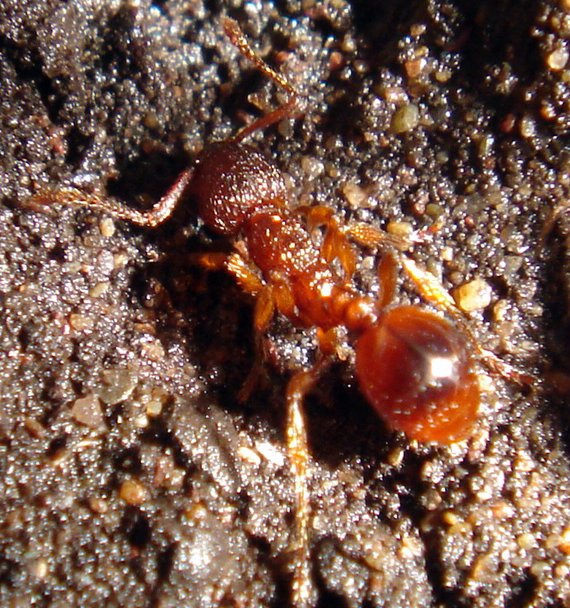 Один раз я делал очень вкусную вещь – жженный сахар. Это когда кладешь немного сахара на ложку, капаешь на него немного воды, держишь над пламенем, получается леденец :) Выходя на улицу, чтобы сообщить о успешном приготовлении этого лакомства, я пролил несколько капель на землю. Вечером, проходя около этого места Я увидел офигенное зрелище – куча рыжих муравьев(Мирмики рубра) вокруг капли сахара. Посмотрев на это дела минут 5 я решил их потрогать, пирующие гурманы быстро разбежались, некоторые отважились меня покусать:) Потом я выследил жилище этого семейства. Стало интересно за ними наблюдать, подсыпал им немного сахара, но они его есть не стали :( Показал родителям колонию и узнал немного о том, как живут муравьи. Минут через 15 кто-то вынес чайник с кипятком и залил все семейство, объяснив что они могут перебраться в дом. Я был разочарован:(