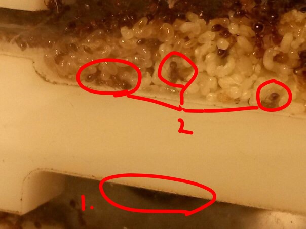 2. Тут у меня 2 варианта: 1 - живых муравьёв закидали личинками и те умерли(?).