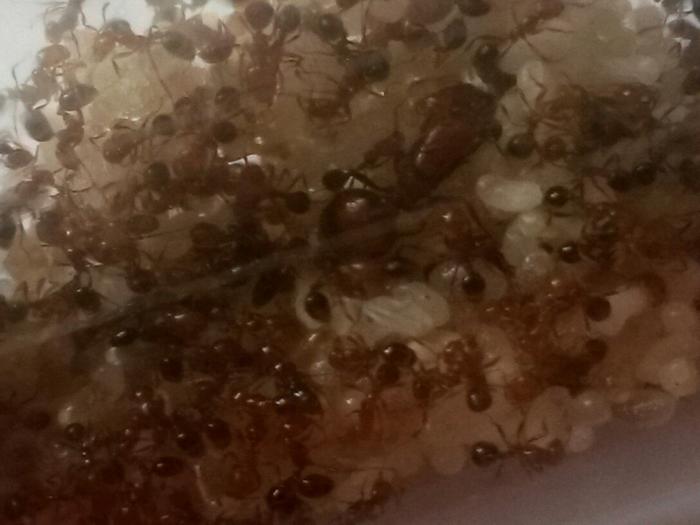 Дела у колонии хорошо ,даже отлично . Много личинок ,куколок и особенно яиц . Их вместе с маткой 12 .