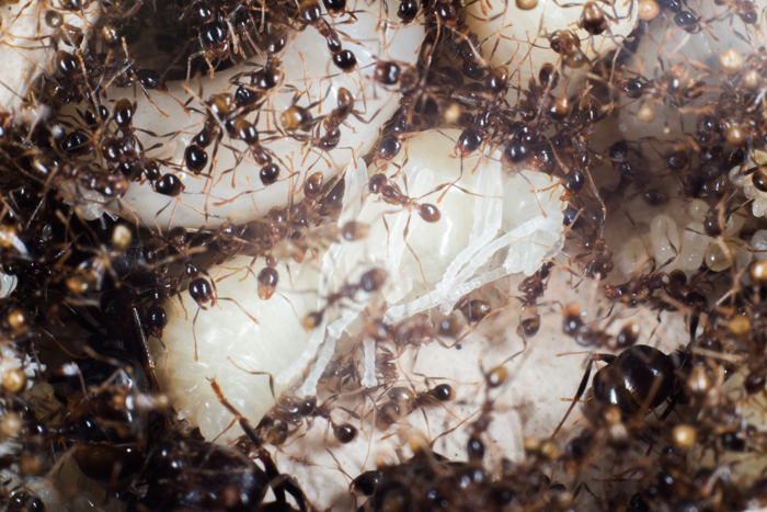 Вот пока этот вопрос остается открытым. Судя по материалам в интернете, микрогины сами семей не основывают и используют только свои собственные. Может как раз они искали самцов из других семей, когда вы их видели вместе с отрядами фуражиров. Макрогины должны основывать семьи сами. Это я стал паниковать, когда они раскидали яйца по пробирке и забыли о них ) У Nicksqr они сами вывели первого рабочего, но с более-менее постоянными подкормками. Так самих на самообеспечение ни я, ни он их не оставлял. Возможно всё же на своей родине в тропиках они как-то вытягивают одного рабочего самостоятельно. Больше за раз у них явно не получается. А дальше он уже разный хлам собирает вокруг гнезда.