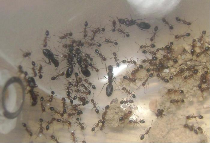 могу ошибаться но у тетрамориума нет жала, да и не похожи они на тетрамориума, да и в литературе я не встречал описание полигинных семей тетрамориума