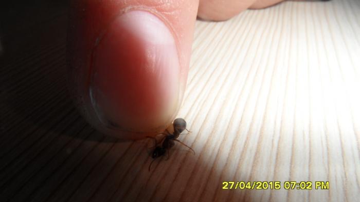 Ещё прошлым летом я заметил парочку крупных, резвых муравьёв которые вечно бегали по пню возле моего дома. Но прошла зима и муравьёв стало намного больше, я даже нашёл их дом, они живут в этом же пне(пень из тополя если что), ну так вот помогите определить вид, уж очень интересно . Длинна муравья без усиков 7мм, но есть и поменьше