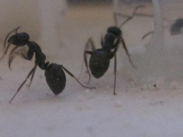 Здравствуйте,вчера 28 вытащил из под ковша экскаватора этих зверей. Предположительно componotus ,какой не знаю.Гнездо было в земле,сверху пух перья и какой-то мусор(может поможет в определении)Принес домой высадил на арену с подсоединенной пробиркой,но они упорно не хотели туда лезть матка неслась где попало. Накормил медом от насекомых отказались. Сегодня во время кормежки когда ставил мед матка ломанулась и уползла в пробирку.За ночь рабочие погрызли гипс на арене в мелкую крошку и бегают облепленные ей. Что сделать помыть арену или не смертельно пусть так носятся?И вообще какие дальнейшие действия.Кормить и белком и углеводами или в чем-то ограничить,потому-что расплода нет?