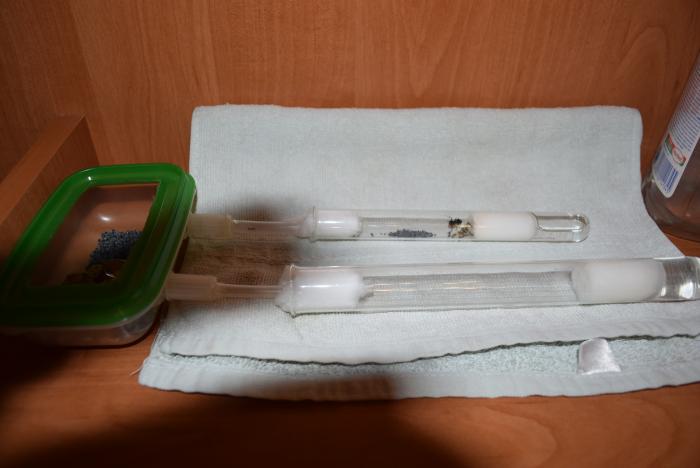 На скорую руку соорудил им мини мини аренку, насыпал мака, накидал камешков и стекляшек (камушки и стекляшки прокипятил минут 10, саму емкость так же обдал кипятком и вычистил), так же подсоединил дополнительную пробирку (не знаю зачем, наверное просто хотелось попробовать и посмотреть как у меня получится. В качестве соединителя между пробирками и мини аренкой использовал термоусадку для проводов 5мм в диаметре (очень капризная штука, под воздействием горячего силикона начинает сживаться, пришлось поизощеряться), так как не смог найти пока у себя в городе силиконовую трубку.