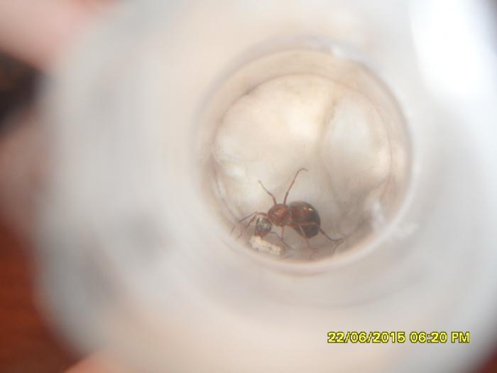 2. Второй моей маткой как я уже писал есть rufibarbisы , ей мне вообще не пришлось долго искать,она сама прилетела ко мне на порог однажды утром.Я подобрал ей ,т.к заметил, что это не serviformica cunicularia, а муравьи другого вида мне не помешают.Королева была с крыльями,и это единственное за что я переживал.На следующий день мои сомнения исчезли, так как и крылья матки,вместо них в пробирке лежали два довольно таки крупных яйца. К следующему дню яиц стало больше, а точнее 8,я надеюсь-это не предел...