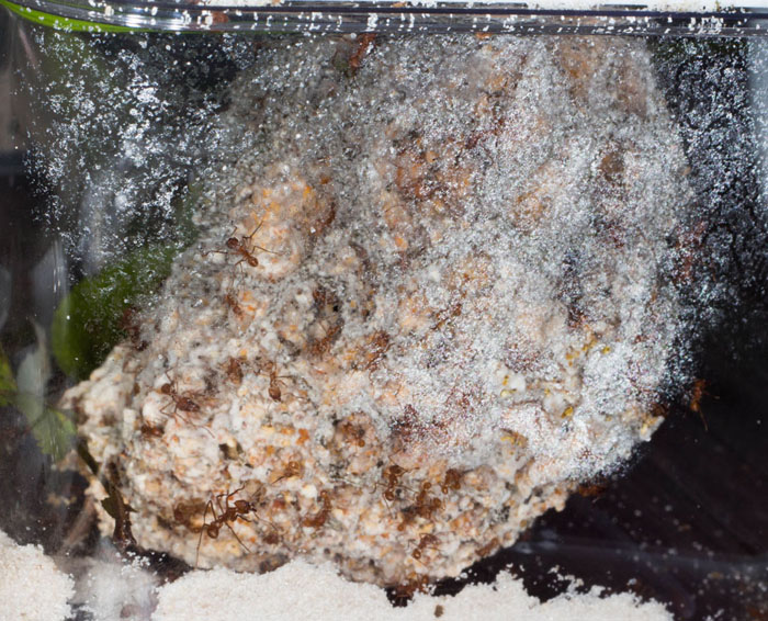 Вот она - основа всей колонии! Нет, не огромный муравей на фоне, а эта пушистая белая непонятная штуковина, на которую приходится молиться как на иконы.