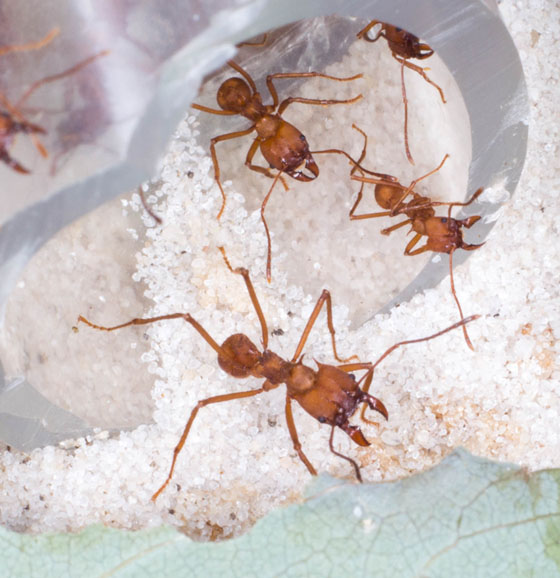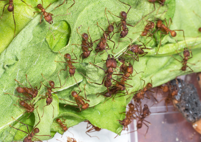 Для более стабильного микроклимата внутри листья приходится держать прямо в гнезде. Сначала весь хлам муравьи выносили на основную арену. Но тут надо хитрить: перенес часть хлама на арену-мусорку, и все стало на свои места.