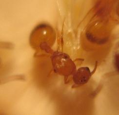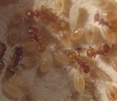и вообще, из известных мне и доступных видов это самый нетребовательный, никакие формикарии ему не нужны, ссыпал их в рюмку, стопку, куском стекла прикрыл и готово.. подобным образом они у меня живут с начала октября, за это время в этих условиях вырастили крылатых и рабочих, и + рабочие откладывают яйца и растят личинок..