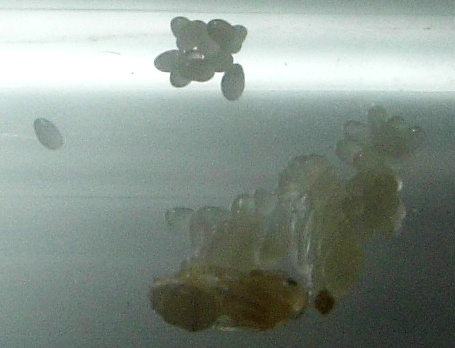 На фото видны уже глазки черные, слева, под брюшком у мамы.