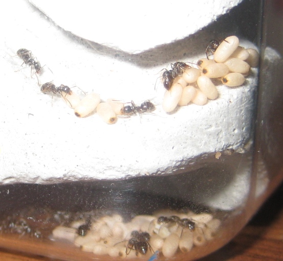 Сейчас в обеих колониях нигеров не меньше 150 муравьев. Каждый день вижу от 5 до 10 прозрачных новорожденных муравьев.