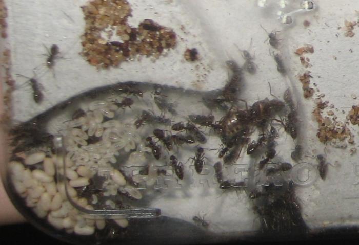 Смушает только, что спустя два месяца еще есть личинки??? %) Матки-то уже давно нет. Кстати, ее останки (разделена на две части), все еще внутри и вокруг них по 5-6 муравьев всегда дежурят.