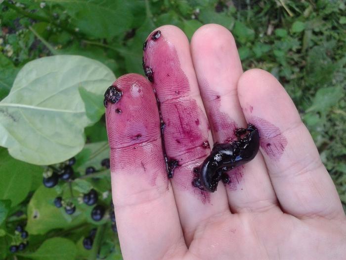 Наверное, всё таки голубика - я имел ввиду если собирать её не давя, то сама шкурка красит руки, а если собирать в рот - то и рот, в чёрный цвет? Да так что никакое мыло не отмоет, но дня через два само всё сойдёт. Ну, как черника из леса, в общем.
