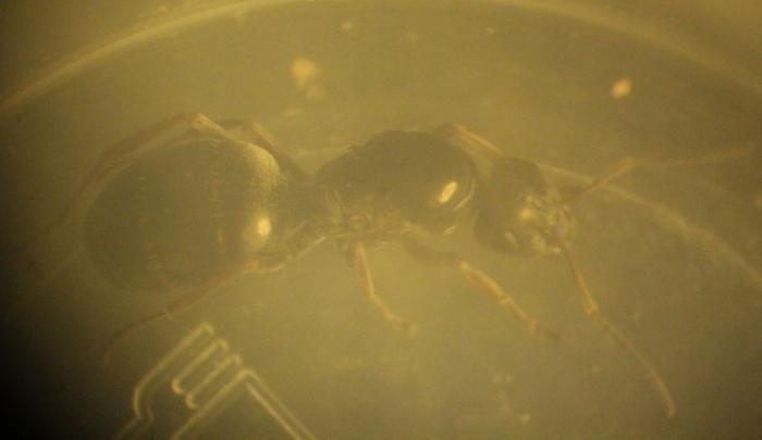 Вчера я поймал копавшуюся в гравии матку, которая мне показалась банальной нигершей, но когда она оказалась на поверхности, то показала мне что это не так. Её брюшко было более продолговато чем у Lasius niger, тельце блестело и переливалось то зелёным, то синим, то красным, движения очень быстрые, с резким изменением направления. Размер:9 мм