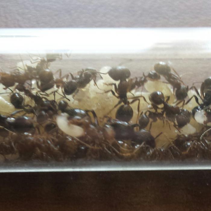 Всем привет!Это мой первый блог(до этого был читателем) и я решил посвятить его мессорам-единственным муравьям,которые по моему мнению могут спорить с кампами.Итак,за мессорами я наблюдал еще в детстве при поездках в крым.Даааа...Тогда это были настоящие гиганты!Эти огромные солдаты,и их колонны бегущие к семянам.Они запали мне в сердце.И в этом году я их завел.Все случилось в июне.Я ездил в крым к родственникам и мне дали задание вскапать огород.Как же я обрадовался,когда из вскопаной земли вылезла агресивная матка,прикрывающая трех крошечных рабочих!Видимо матка этого года.Я аккуратно посадил их в пробирку и долго любавался ими.Этим же днем я побежал в магазин за маком и насыпал им чуть чуть,а на следующий день я решил ускорить развитие.....и тут сработала моя жадность...я подкинул им около 50 куколок мессоров!Колония приехала в Подольск и вырастила гору расплода.Итак фото.Прозьба не пинать,я воткал на телефон.Скоро переселю в форм.