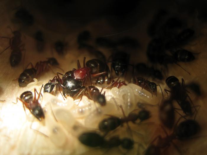 С разного рода подселениями тоже постарайтесь поаккуратней. Всё-таки запах у расплода совсем другой, а герки - муравьи достаточно агрессивные.