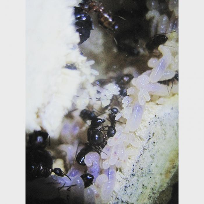 На данный момент, в колонии насчитывается коло 200 рабочих, около 100 куколок, около 100 яиц и около 100 личинок)