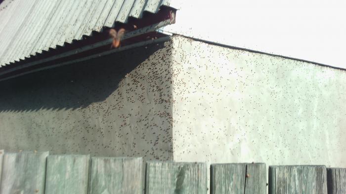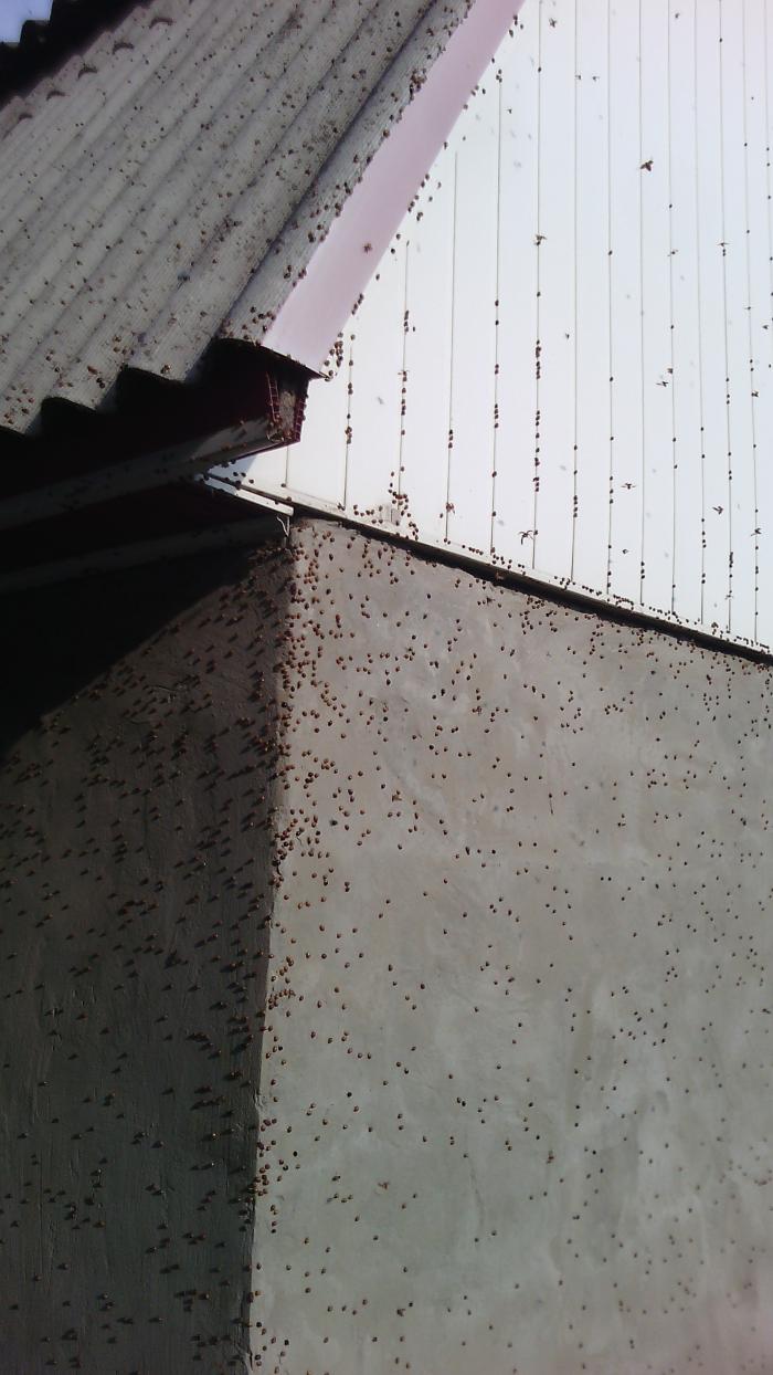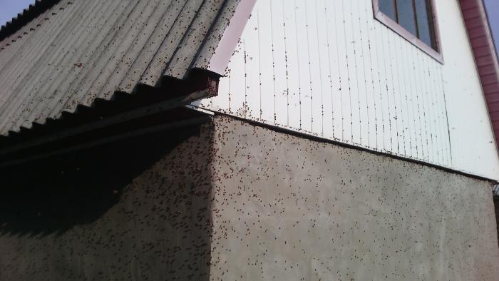 К слову о Божьих коровках. Как-то на проходя вдоль дороги на даче столкнулся с таким вот явлением. Было это в конце октября. Было сравнительно тепло, около 17 градусов. Их тогда летало довольно много везде на даче и даже немного в городе. Но вот именно возле этого дома была просто поразительная их концентрация. И что интересно Божьи коровки были вместе совсем разные, с разной окраской. Где-то 4 или 5 разновидностей.