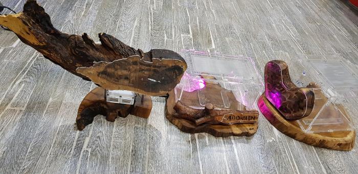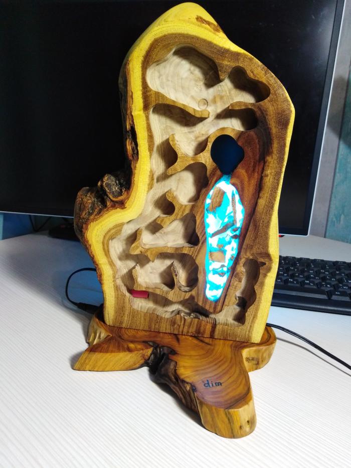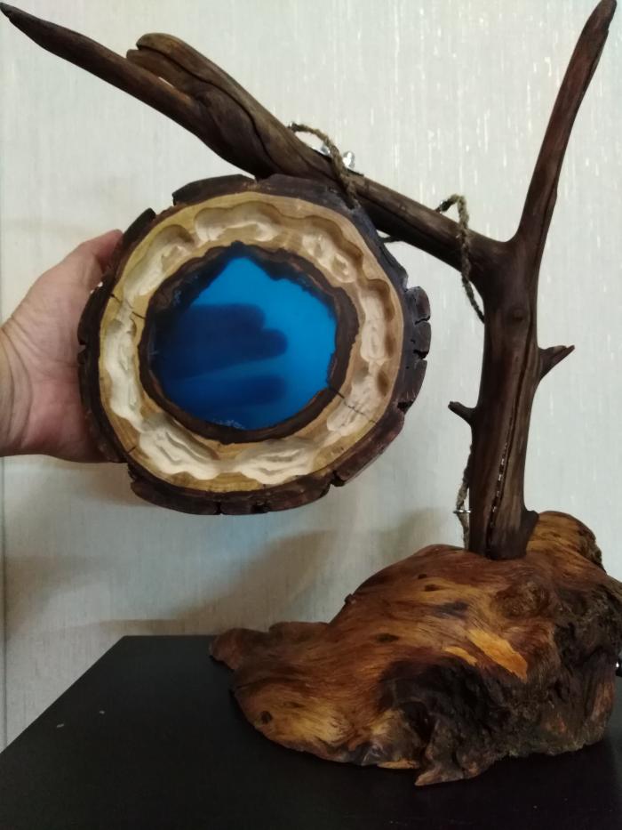 Эксперементировал с новой смолой, производитель обещал толстую заливку за раз. Но закипела, по этому получился такой эффект. Мне нравится))