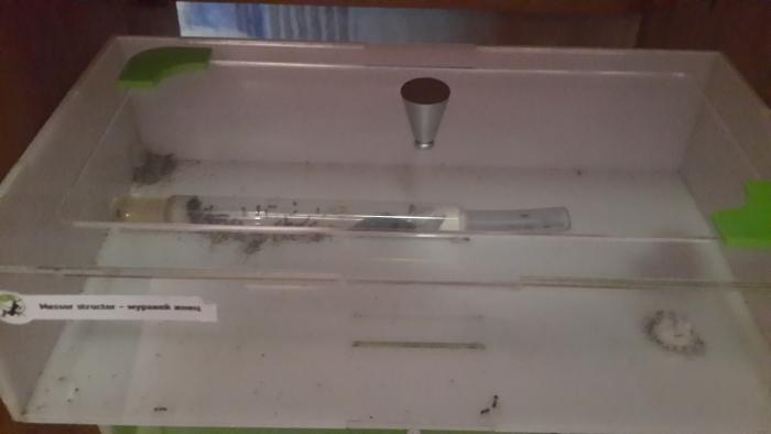 Веселье началось 28.02. На AntClube мне дали хороший совет: уменьшить диаметр входа и открыть крышку арены, а края смазать антипобегом (без крыши будет больше плюсов, нежели наоборот). Я мол взялся делать... Решил, что пока не прицеплю колпачок от шприца, обмотанный ваткой (Дабы уменьшить диаметр входа, что повысит влажность внутри инкубатора), с крышкой ничего придумывать не стану.