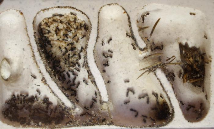 Мусор муравьи всегда найдут. Остатки съеденных насекомых, например. И будут им щели конопатить. Пусть уж лучше песочком и иголками. Это моё мнение и я его не навязываю. Некоторым видам песок крайне необходим (бегункам, формикам...) Они им личинок засыпают, когда те плетут кокон. К песчинкам личинка крепит паутинку кокона во время плетения. Не будет песка - будут пытаться обкладывать личинок мусором. Не будет опоры - кокон может не получиться. Личинка окуклится без кокона. В некоторых случаях неудачливых личинок съедают. Вот здесь у меня видео, как кокон личинка плетёт и как её песочком обкладывают:
